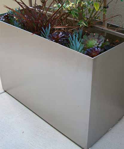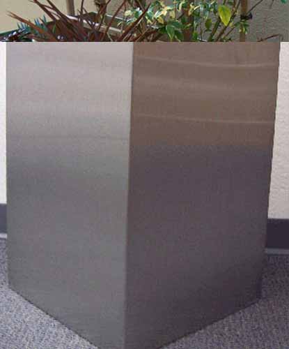 If you’re looking for a real-metal finish on the exterior of your planters, but worry about corrosion causing leaks, look no further than The Chandler Company’s metal-clad planter line. These are ideal for offices, hotels, casinos, airports, and many other interior commercial applications. Lined with fiberglass on all sides, these units are both lightweight and completely waterproof. If drainage holes are required, they can easily be drilled into the unit’s fiberglass bottom.